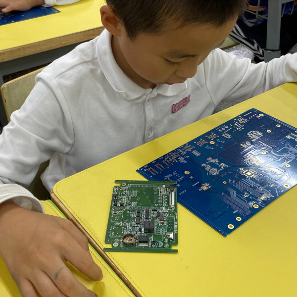 陪伴小朋友講課的是壹玖肆貳科技有限公司AI工程師虞新建叔叔,也是壹玖肆貳科技總經理! 他在跟小朋友講解過程中用到一些SMT貼片加工元器件,引起了同學們極大的好奇心。給龍外二年級9班的孩子們帶來了一堂別開生面的機器人誕生講解課堂。也給龍外的同學們詮釋了什么是機器人。生動活潑地講解了機器人誕生的過程、機器人的歷史等等。